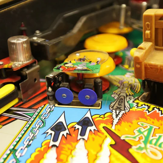 So what makes the ‘Gold’ Edition so special? We should start by explaining that a certain amount of confusion was caused by the fact that there are in fact two ‘gold’ machines. Once the production run had broken the previous sales record for a pinball machine, which was held by the Bally Eight Ball with 20,230 units, all the subsequent Addams Family pinball tables were produced with gold cabinets. The only defining feature of these tables is that they were the tail end of the production run.