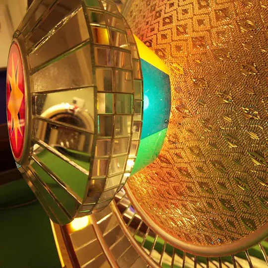 Hand-built in California, USA, this spectacular wall-mounted speaker features four illuminated bubble tubes and a rotating mirrored centre section that casts vibrant hues around the room. Its dynamic motion and rich, full-bodied sound capture the unmistakable spirit of Rock-Ola’s classic jukeboxes, now reimagined for today’s listener.