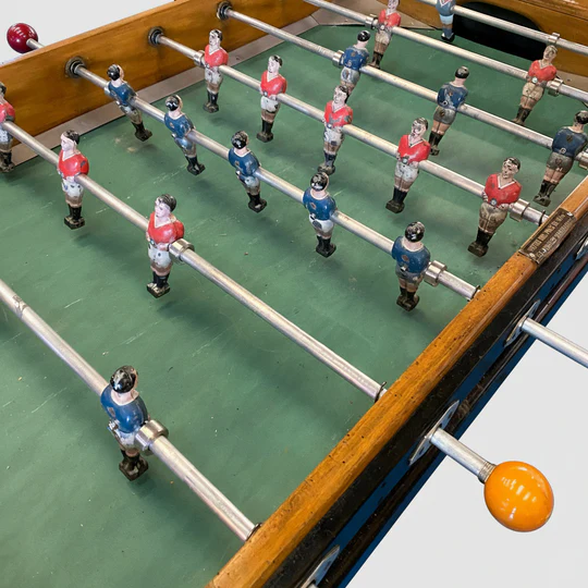 This original Finale foosball table from the early 1950s is a statement piece with unmistakable soul. Built in Montbéliard, at the heart of France’s babyfoot culture, it represents the golden age of café table football, when robust materials and elegant design defined the game.